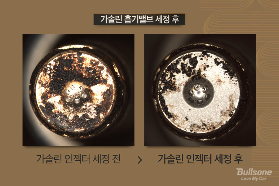 불스원샷 시그니처를 사용한 인젝터의 세정 전의 모습과 세정 후의 모습입니다. 엔진 때가 제거되는 모습을 확인하니 확연한 차이가 있다는 것을 느낄 수 있습니다.