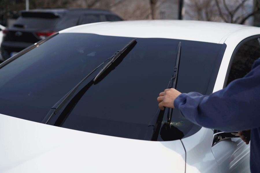 기존 와이퍼를 분리하기 위해 차량의 와이퍼를 세워줍니다.