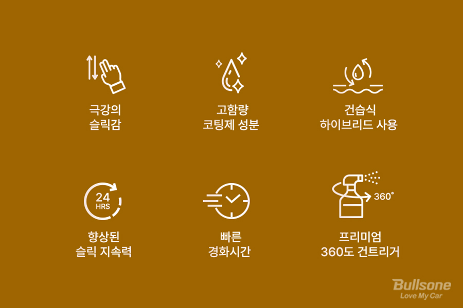 슬릭폴 왁스는 다양한 퍼포먼스를 보여주는데요, 만져보면 바로 느껴지는 극강의 슬릭감을 시작으로, 24시간이나 지속되는 향상된 슬릭력, 미트질 1,000회까지 끄떡없는 강력한 내구성, 고함량의 코팅성분, 건습식으로도 사용 가능한 하이브리드 사용까지! 카샴푸를 사용한 후 꼭 해야 하는 왁스 작업입니다.