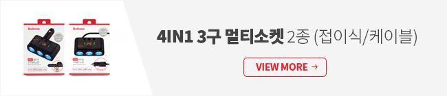 총 5개를 지원하는 3구 멀티소켓 하나면 소켓이 부족할 일은 절대 없습니다. 또 차량에 알맞게 접이식 또는 케이블 형태로 제품이 나누어져 있기 때문에 편한 방식으로 구매가 가능합니다. 충전 때문에 불편함을 느끼셨다면 4in1 3구 멀티소켓으로 한 번에 해결해 보세요.