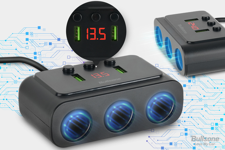 4in1 3구 멀티소켓 제품은 ① 3구 개별 전원버튼 ② QC고속충전 (18W+18W) ③ 차량 배터리 전압측정 ④ LED 무드램프 기능을 갖춘 고성능 제품입니다. 3구 소켓의 전원을 각각 켰다 껐다 할 수 있을 뿐만 아니라 USB 포트는 고속충전을 지원하기 때문에, 굉장히 실용적으로 활용이 가능합니다.