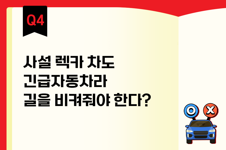 Q4. 사설 렉카 차도 긴급자동차라 길을 비켜줘야 한다? (O/X)