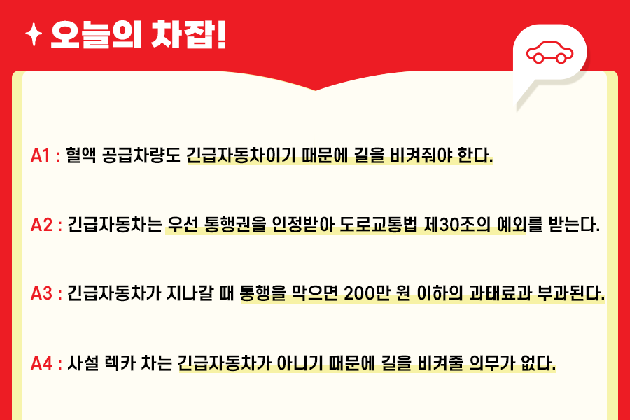 Q1. 혈액 공급차량도 긴급자동차다? (O/X)
