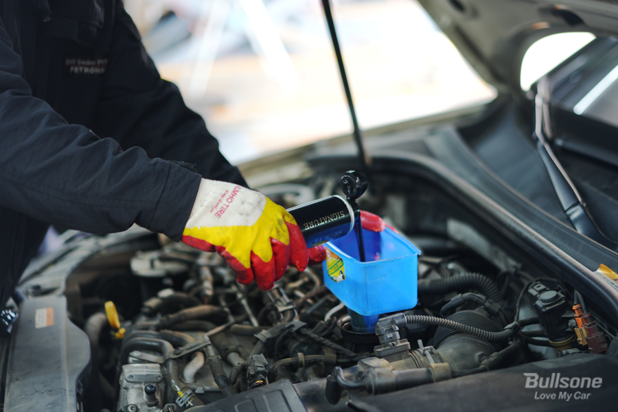엔진오일을 주입할 때, 엔진오일을 넣고 불스파워를 넣어주면 됩니다. 불스파워 엔진코팅제는 엔진오일 4~6L 기준 한 병씩 주입하는 것을 권장하며, 대부분의 차량이 엔진오일 4~6L가 들어가기 때문에 오일 교환 시마다 한 병이라 생각하면 됩니다. 한 병 용량은 300ml 이기 때문에 기존 엔진오일을 넣으면서 함께 넣기 부담 없는 양입니다.