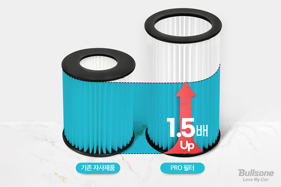 뿐만 아니라 필터 면적 자체가 1.5배 더 확대되어, 차량 내 미세먼지를 더 빠르게 제거해줍니다.