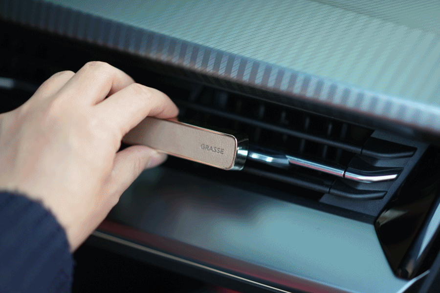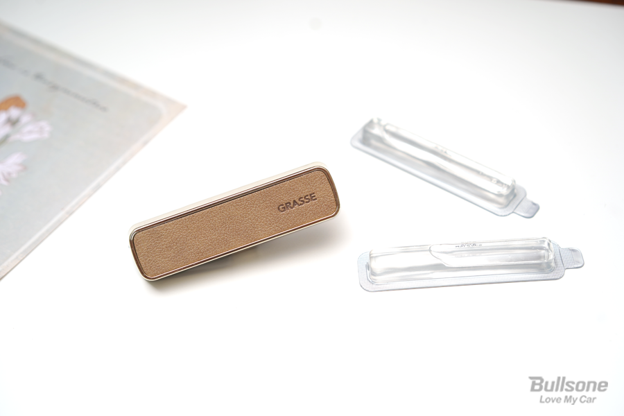 대시보드부터 실내 소재가 가죽 소재로 되어 있는데, 플라스틱 소재의 방향제를 사용하면 어울리지 않았거든요. 새롭게 출시한 그라스 방향제는 '레더' 스틱 답게, 가죽 질감과 메탈 느낌을 조합하여 감각적인 공간을 연출해 줍니다.