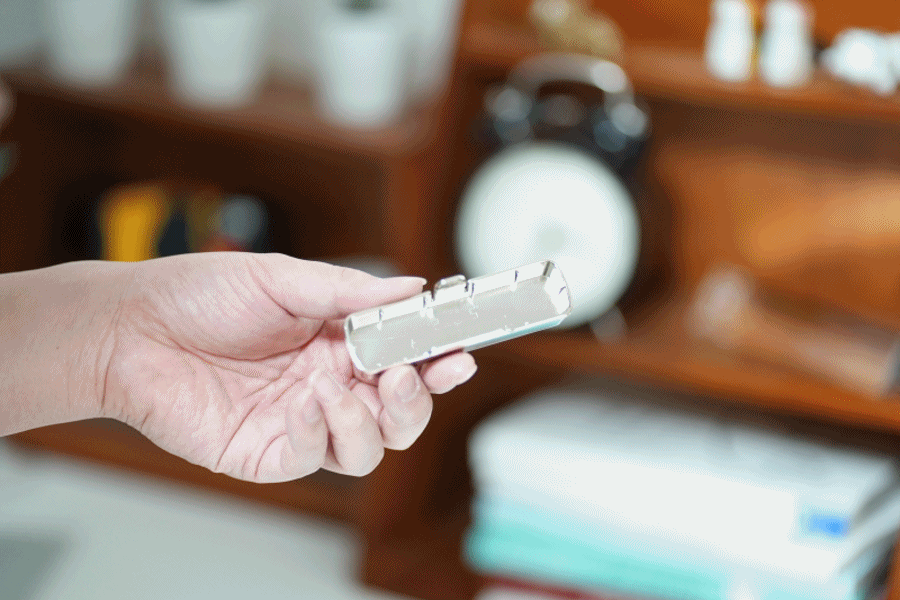 레더스틱 본품은 후면이 가볍게 분리되는데요, ①OPEN 홈을 살짝 잡아주고 후판을 당겨주면 바로 분리가 됩니다. 그 빈 공간에 멤브레인을 넣어주면 끝입니다.