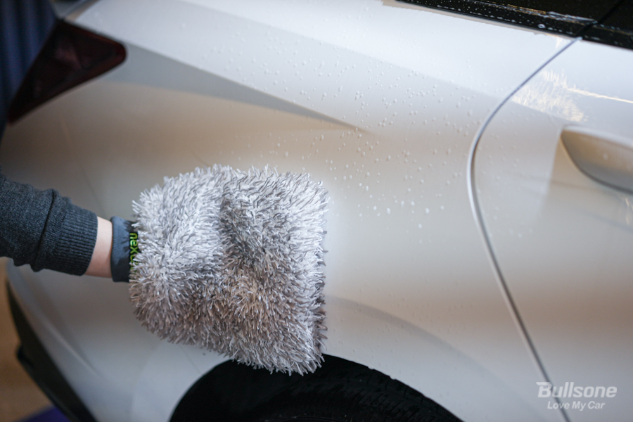 ③ 충분히 분사를 했다면 미트나 세차용 스펀지를 이용해 표면을 골고루 문질러주세요. 문지르면서 오염이 사라지는 것을 눈으로 확인할 수 있습니다.