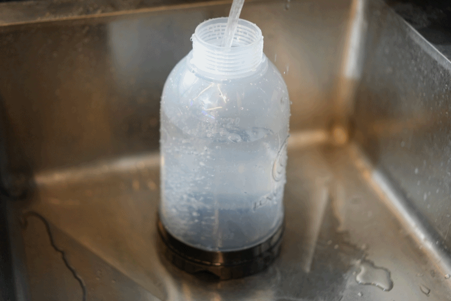 압축분무기 뚜껑을 돌려 닫아주신 후, 흔들어서 농축액과 물을 섞어주세요.