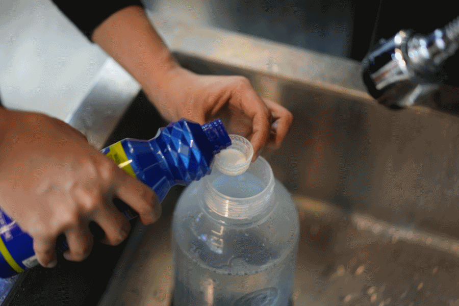 위에서 언급한 만큼 비율에 맞춰 희석시켜 주면 됩니다. 뚜껑이 계량컵이라 생각하면 편하시고요. 뚜껑 한 번에 8ml 농축액이 담기며, 저는 5번을 넣어 40ml 양을 맞췄습니다.