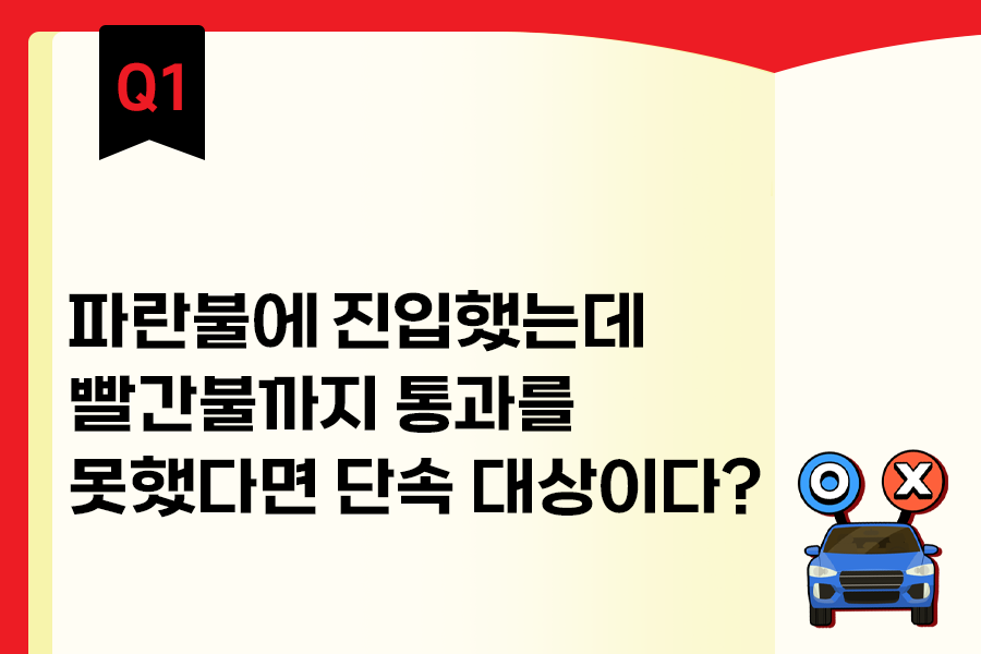 따라서 파란 불에 앞 차가 진행한다 해서 무조건 따라가지 말고, 앞 쪽에 차가 막혀 있는지를 미리 판단해주세요.