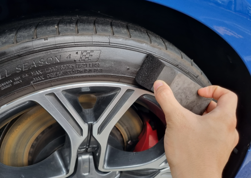 타이어 코트 젤은 스펀지에 제품을 짜고 난 후 타이어에 발라주기만 하면 광이 제대로 살아납니다. 광택이 6주나 지속되고, 물기가 있어도 사용이 가능하다는 것이 가장 큰 장점이에요.