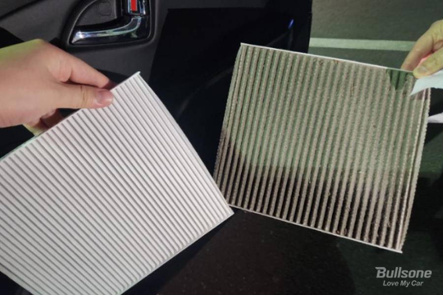 막상 교체를 하려고 기존 필터를 꺼내보니, 이 정도로 더러울 거라 생각도 못했는데 너무 심하게 더러워서 놀랐다고 합니다. 무려 4만 km를 주행하는 동안 한 번도 교체하지 않았다고 해요; 그래서 오히려 새 필터와 기존 필터의 비교가 확실하게 되네요.