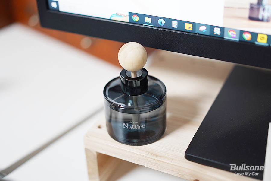 위에서도 언급했듯 네이처 디퓨저는 실내 어느 공간에서도 굉장히 어울리는 디자인인데요, 하나 가져다 두는 것만으로도 공간의 분위기가 확 바뀝니다. 특히 컴퓨터 앞 사무공간에서는 굉장히 칙칙하기만 했는데, 고급 향수와 같은 그라스가 올려지니 좋은 방에서 멋진 일을 하는 분위기로 연출됩니다.