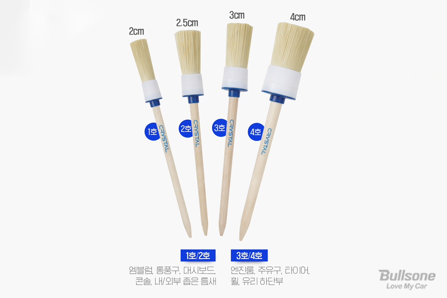 세차 브러쉬는 실내뿐만 아니라 실외 세차에서도 많이 사용합니다. 4종 세트 구성으로 이루어져, 작은 사이즈는 실내의 통풍구, 대시보드, 콘솔 등 좁은 틈새의 먼지를 많이 닦아주고요, 큰 브러쉬들은 차량의 외관인 엔진룸이나, 주유구, 타이어, 휠까지 손이 닿지 않는 곳 위주로 활용해 줍니다.