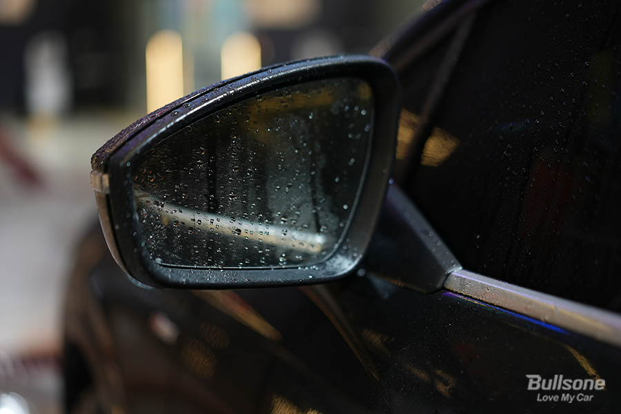 앞 유리는 와이퍼라도 있기 때문에 어떻게든 물방울을 닦아낼 수 있지만, 사이드 미러는 운전 중 물방울을 닦아내기도 힘들뿐더러 옆 유리창까지 같이 물방울이 붙어있으면 옆 쪽의 시야가 차단되어, 안전 운전에 큰 지장을 줍니다.