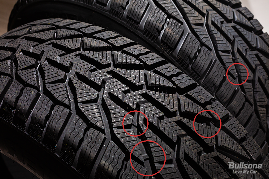 타이어 교체가 필요한지 확인해 보는 방법은 타이어 안쪽 사이사이에 마모 한계점이 있습니다. 이 마모 한계점까지 타이어가 다가온다면 교체를 해주시는 것이 좋습니다.
