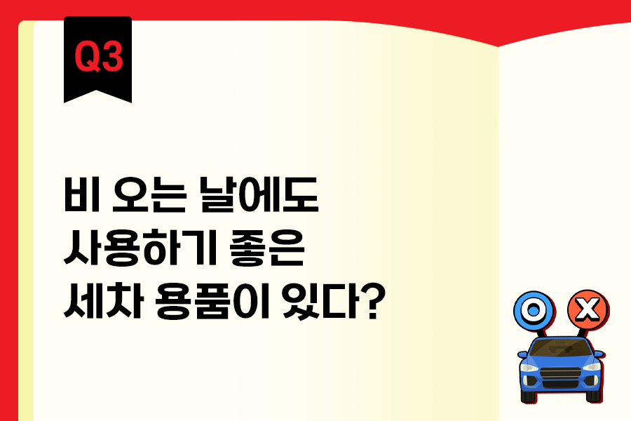 비가 가볍게 오는 상태에서도 세차를 할 수 있는 용품들이 많습니다. 특히 물기가 필요한 세차 용품이 있는가 반면, 물기가 남아 있는 상태에서도 세차를 할 수 있는 제품들이 많은데요. 때문에 비가 조금씩 내리는 공간에서도 셀프세차 및 시공이 가능합니다. 비가 오는 날에도 깨끗한 내 차 관리를 위해, 가능한 제품으로 세차와 시공을 해보시기 바랍니다.