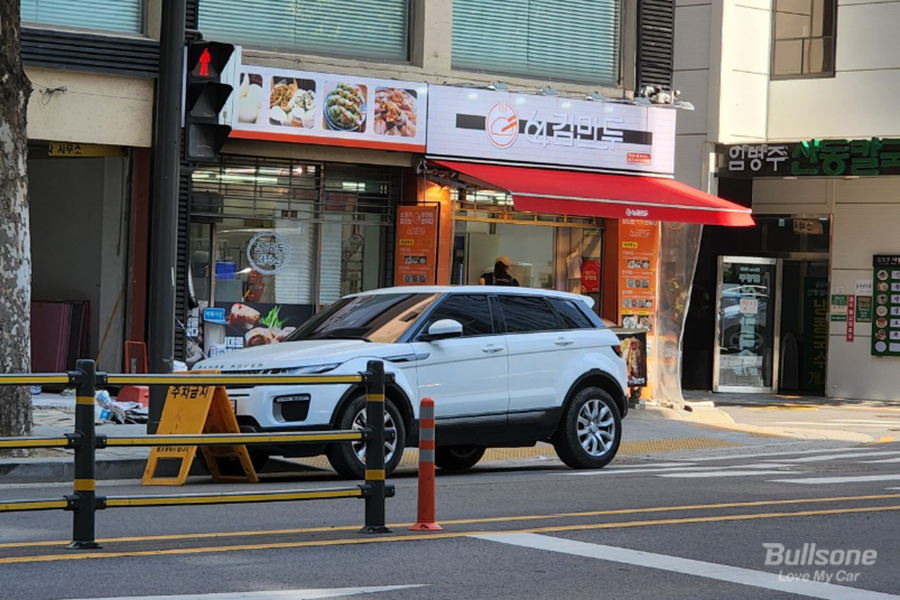 사진만 봐도 화가 나는 불법 주정차입니다. 횡단보도 면적인 선 위에 주차를 한 상태이며, 심지어 번호판까지 가려놓았습니다. 이는 불법주정차에 해당되며 1분만 정차해도 바로 단속 대상이 됩니다. 신고는 안전신문고를 통해 신고할 수 있습니다. 단 같은 방향과 위치에서 1분 간격으로 사진을 두 장 찍어야 하며, 촬영 위치가 각각 다르면 안 됩니다.