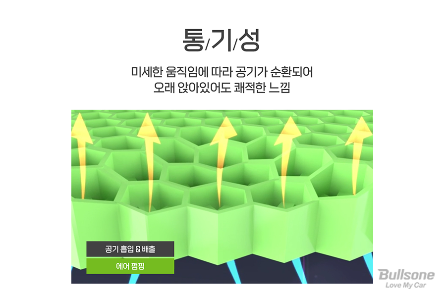 뛰어난 탄력성과 복원력으로 균일한 체압을 분산시키고, 충격과 진동을 효과적으로 흡수시켜 줍니다. 무엇보다 에어셀베타젤은 공기 순환 작용이 잘 되어 쾌적한 느낌을 주는데요. 일반 의자에 비해 체온 상승 억제효과가 뛰어나며, 미세한 움직임에 따라 공기 흡입과 배출이 잘 되기 때문에 더운 날에도 불편함 없이 사용할 수 있는 자동차 방석입니다.