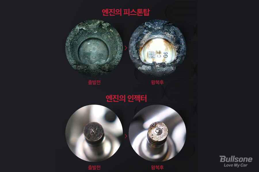 엔진 속에 때가 낀다면, 연료 분사를 방해하여 연비 저하와 출력 감소, 배기가스 증가 및 RPM 불안정 등 다양한 요소에 문제가 생깁니다. 뿐만 아니라 산소 공급을 방해하며 누적된 카본 때가 연료를 흡수하고, 피스톤 TOP와 실린더 헤드에 연소실을 형성하여 노킹 발생과 NOX 증가 등 다양한 부분으로 차량이 안 좋아질 수 있습니다.