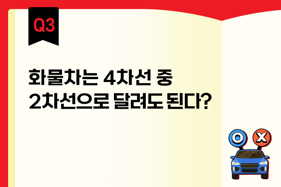 여기서 중요한 포인트는 화물차는 추월을 위해 2차선을 추월차로로 잠시 사용해도 됩니다. 정확히는 지정된 차로에서 추월을 위해 일시적으로 왼쪽 차로를 이용할 수 있습니다. 하지만 추월 후에는 바로 원래 차로로 이동해야 합니다. 만약 그대로 주행 시 단속대상이 될 수 있습니다.