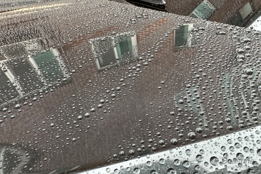 시공을 하고 난 뒤 이틀이 지나고 비가 내렸는데, 훌륭한 발수력과 쉬팅력을 보여서 만족스러워하셨습니다. 쌓인 먼지가 비와 함께 씻겨 내려가면서 차에 오염도도 크지 않아 굉장히 편리한 고체왁스인데요.