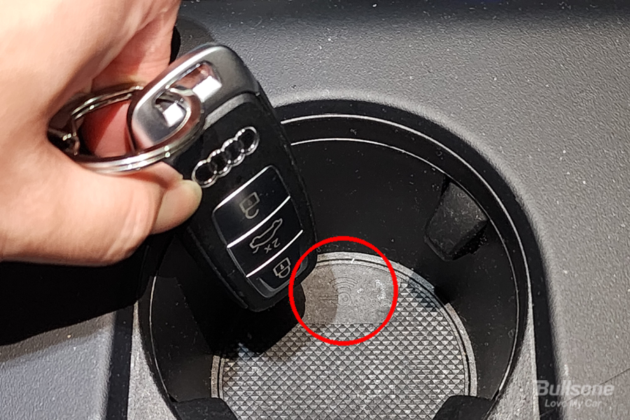 비상사태로, 만약 스마트키에 배터리가 다 닳아서 작동을 하지 않는다면? 해결 방법이 있습니다. 당장 배터리를 교환하기 어려운 경우 배터리가 없는 상태에서도 시동을 걸 수 있습니다.
