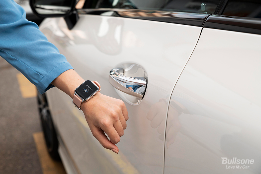 아이폰, 애플워치 및 안드로이드 계열 스마트폰으로 자동차의 도어를 열거나 잠글 수 있습니다. 게다가 시동까지 작동시킬 수 있으며 한 개의 디바이스가 아닌 여러 개의 디바이스까지 사용 권한을 공유할 수 있습니다. 때문에 나뿐만 아니라 가족이나 친구들까지, 내가 등록해 놓은 디바이스라면 모두 차 문을 열고 시동을 걸 수 있습니다. 차 키를 따로 가지고 다닐 필요 없이 스마트폰에 넣고 다닐 수 있어 굉장히 편리합니다.