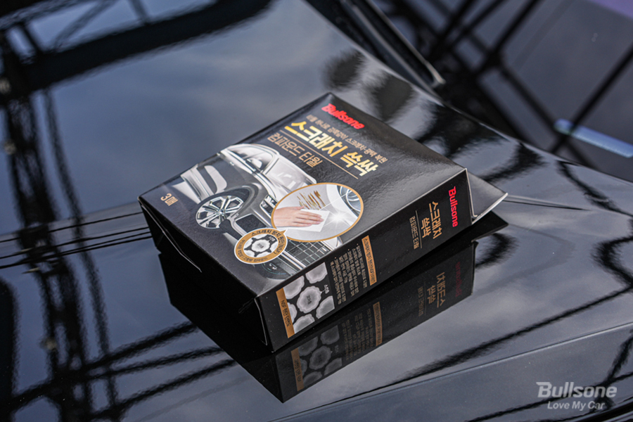 중요한 건 광택도 함께 복원된다는 포인트입니다. 보통 컴파운드를 사용하면 광택이 사라지기 때문에 광택은 따로 작업하는 경우가 많은데요, 스크래치 쓱싹 컴파운드 타월은 광택까지 함께 복원이 되어 두 번 작업을 할 필요가 없습니다.