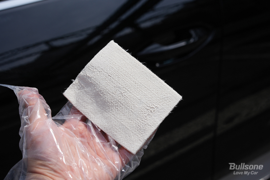스펀지를 유리면에 밀착시키고 균일한 힘으로 꼼꼼하게 바른 후 5분간 경화시켜 주면 되고, 이후 마른 타월로 깨끗하게 닦아주면 끝!입니다.