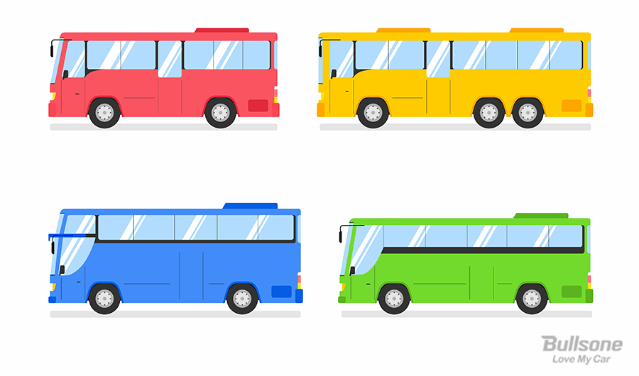 버스는 색깔별로 버스의 종류가 나뉘어 있습니다. 때문에 버스를 보면 이 버스가 어느 곳을 향하고 있는지, 내가 지금 타고 이동할 수 있는 버스인지를 파악하기가 좋습니다. 버스는 색깔별로 ① 빨간색은 광역버스, ② 노란색은 순환버스, ③ 파란색은 간선버스, ④ 초록색은 지선버스로 나뉘어 있는데요. 내 목적지가 어느 지역인지, 또는 지하철로 이동해 환승할지 등에 따라 버스를 파악해 놓으면 더 빠르고 편하게 탈 수 있습니다.