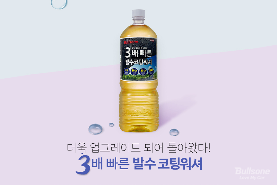 뿐만 아니라 코팅성분을 30% 향상하고 지속력을 20% 향상해서 발수코팅의 효과가 오래 지속되며, 발수각 100도인 최고 수준에 도달하는 시간을 1분으로 줄여 기존 발수코팅 워셔보다 3배 빠른 발수코팅으로 업그레이드했습니다.