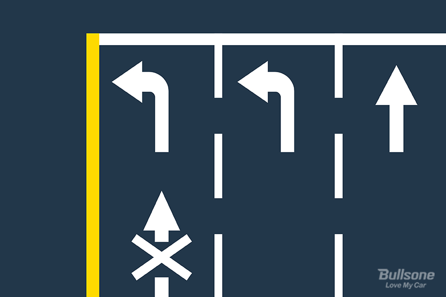 해당 차선을 기준으로 본다면 1차선에서는 좌회전 차선임에도 불구하고 직진 금지 표시가 있기 때문에 좌회전만 가능합니다. 2차선에서는 좌회전 표시는 있지만 직진 금지가 없기 때문에 직진이 가능합니다. 3차선은 직진 차선입니다. 하지만 2차선에서 직진을 하기 위해서는 3차선인 직진 차선에 껴야 하는 경우가 많기 때문에 사고 위험성이 많습니다.