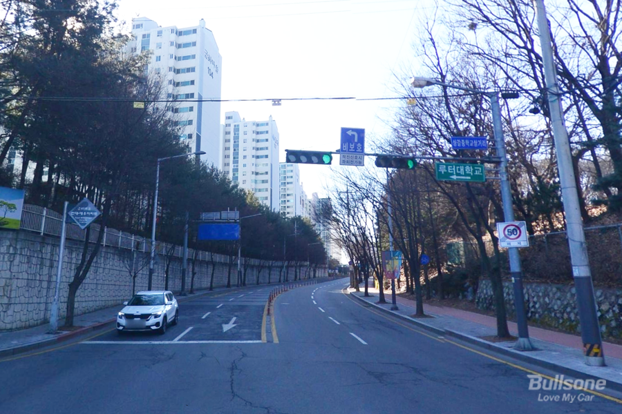 좌회전 차선에서 직진은 가능하나 좁아지는 도로일 경우, 합류하기가 위험하며 기존 직진 차량에 방해가 되지 않는 선에서 들어가야 하기 때문에, 가급적 차량이 아예 없을 때 직진을 하거나 조금 더 일찍 차선을 변경해서 직진을 해주시는 것이 좋습니다.