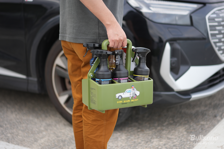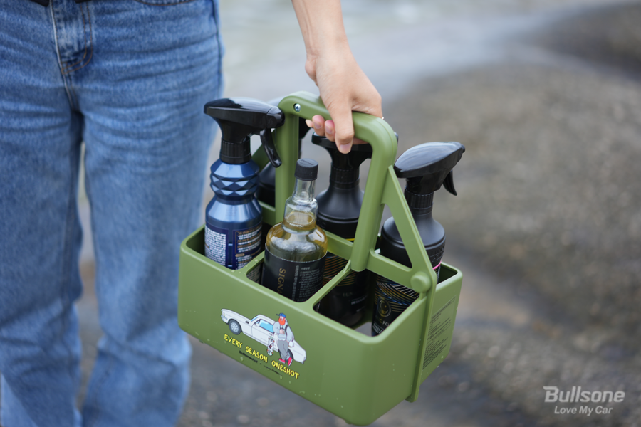 평소 셀프세차 할 때 루나틱폴리시를 주 메인으로 사용하는데, 원샷 캐리어 자체로 필요한 세차용품을 담아 세차할 때 옆에 꺼내놓으면 정말 편하게 사용할 수 있습니다. 일러스트 그림들이 감성 있게 튀어서, 세차장에서 옆에 두는 것만으로도 기분이 좋습니다.