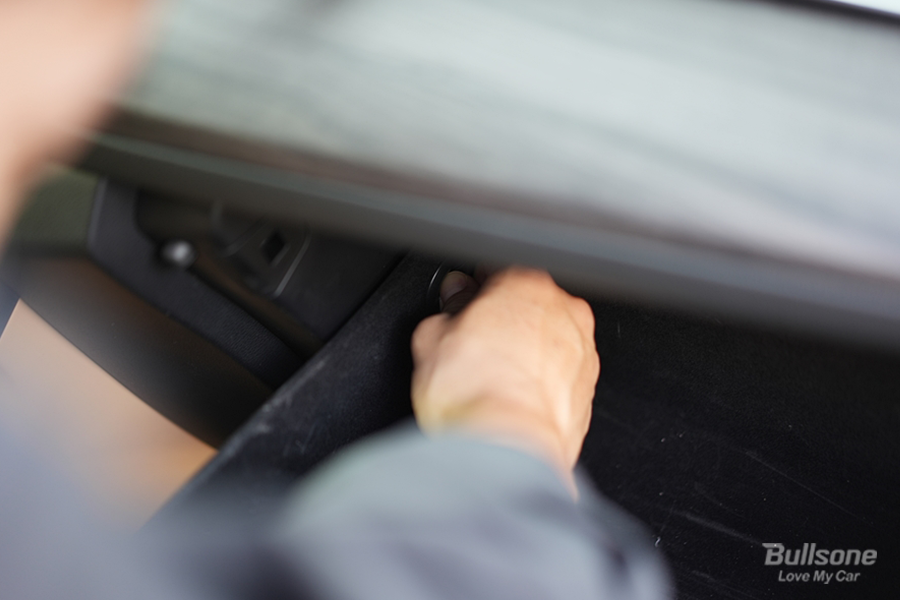 ① 조수석 글로브 박스를 열어주고 내용물을 정리해 줍니다.