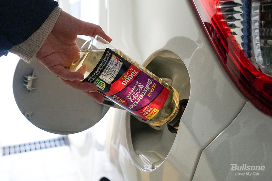주유소에 가서, 연료첨가제 불스원샷을 먼저 넣은 후 기름을 2/3 이상 채워주는 것이 가장 베스트이며, 주유를 모두 한 후 불스원샷을 주입해도 문제는 없습니다.