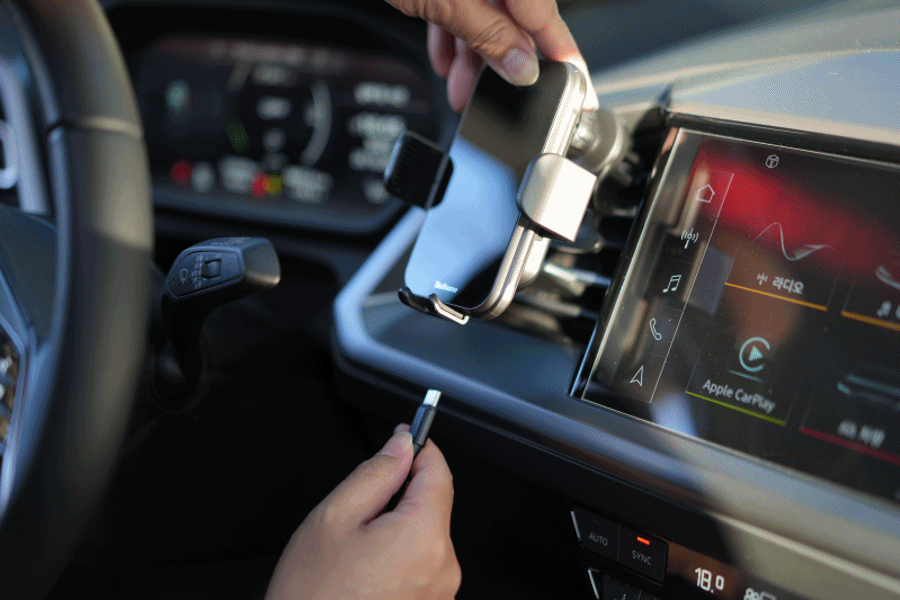 운전 중 스마트폰을 사용하면 배터리가 지속적으로 닳수밖에 없습니다. 음악을 켠다던지 내비게이션을 사용하는 등 끊임없이 작동을 시키기 때문인데요. 일반 거치대를 사용할 경우, 운전 중 충전을 위해 단자를 꽂을 때 위험한 상황이 발생할 수 있습니다.