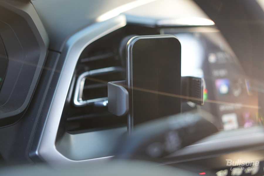 직접 사용해 보시면 아시겠지만, 고정 클립이 윗부분에 위치해 있어 밸런스가 잘 맞추어져 있습니다. 송풍구에 장착했을 때 흔들림 없이 단단하게 고정되어 있는 점이 가장 마음에 듭니다.