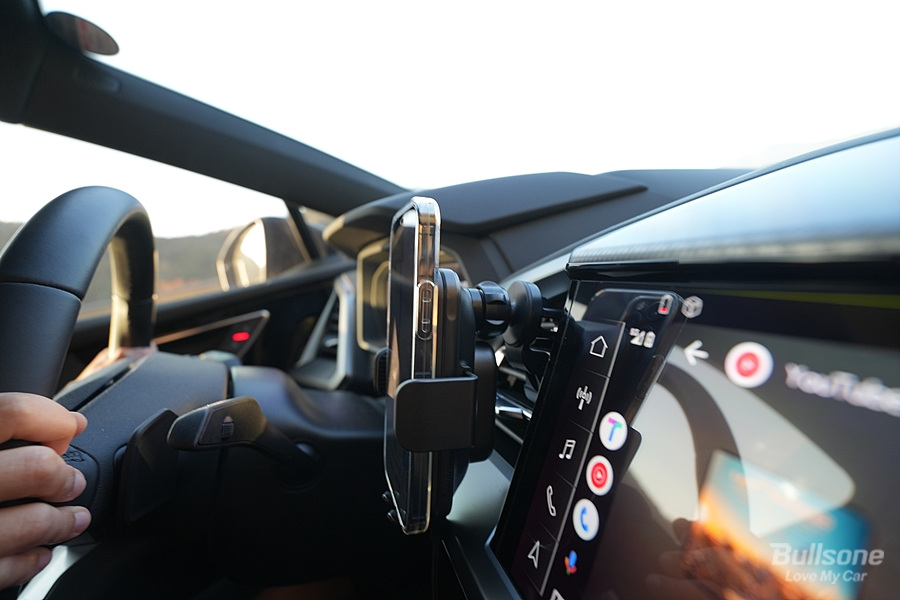 일반적인 스마트폰 거치대는 고속으로 주행하거나, 급출발 급정거를 하면 잡소리와 함께, 심하게 흔들려 불안정한 모습을 많이 보여주는데요. 오토스캔 플러스 무선충전거치대는 확실히 스마트폰을 단단하게 잡아주는 모습을 확인할 수 있었습니다.