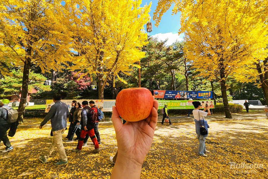 문경새재 도립공원에 도착하자마자 볼 수 있는 건 황금빛 단풍 구경입니다. 아름다운 은행나무 사이로 떨어지는 낭만이 가득하며, 사과처럼 새빨간 단풍이 어울리는 공간입니다. 많은 사람들이 문경새재 도립공원에서 단풍을 찍고 감상하며 즐기고 있습니다.