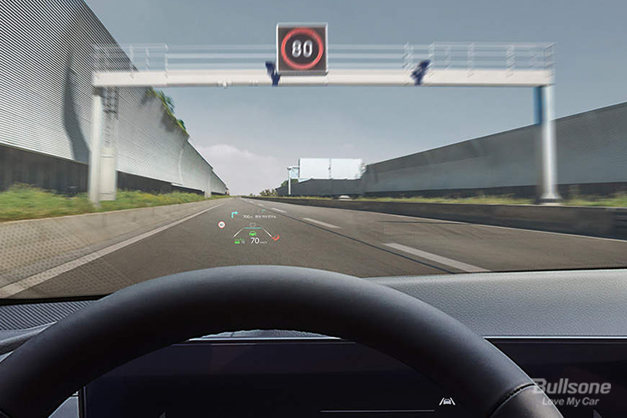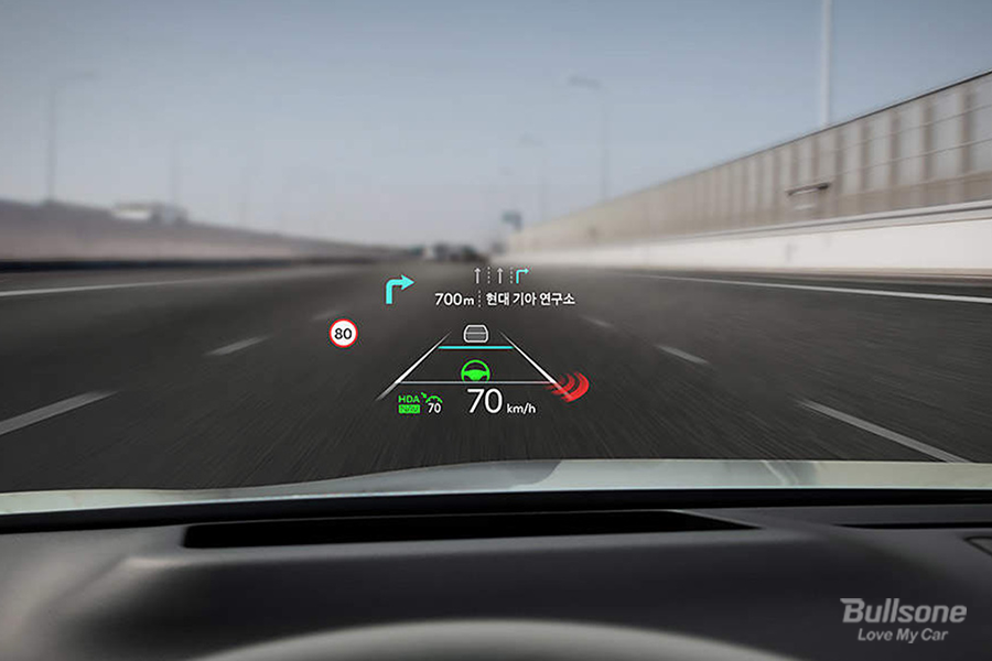 기본적인 HUD가 들어가고, 그 안에서 많은 옵션들을 표시해 주는데요. 내비게이션 기반의 스마트 크루즈 컨트롤이 가능합니다. 내비게이션을 인지하여, 안전구간과 곡선로 진입 전에 속도를 줄여주고, 벗어나면 원래 속도로 주행해 주는 더 똑똑한 스마트 크루즈 컨트롤이 도로 상황에 맞추어 주행을 도와줍니다.