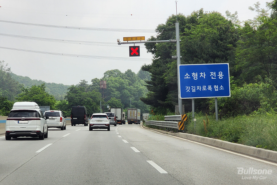 길이 막히는 구간에서는, 소형차 전용 도로 주행을 허용하고 있습니다. 혹시나 내 차가 소형차가 아닐까? 생각에 진입을 못하는 차량도 많이 볼 수 있는데 일반 승용차라면 모두 이용할 수 있습니다.