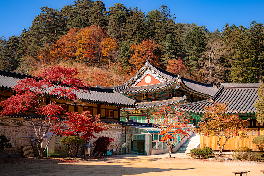 오대산 전나무숲길은 월정사의 일주문부터 금강교까지 1km 정도 이어지는 숲길입니다. 약 1,700그루의 전나무가 하늘 높이 뻗어있는 아름다운 숲으로, 많은 사람들이 찾는 관광명소입니다. 특히 가을에는 붉게 물든 단풍을 즐길 수 있고, 겨울에는 소복이 내리는 눈까지 감상할 수 있어서 힐링 코스로도 유명한 평창 여행지입니다.