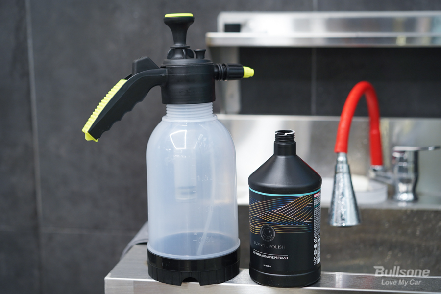 ③ 프리워시 희석액을 차량에 도포하고 일정 시간이 지난 후, 고압수를 사용해 꼼꼼하게 세척하면 끝입니다.