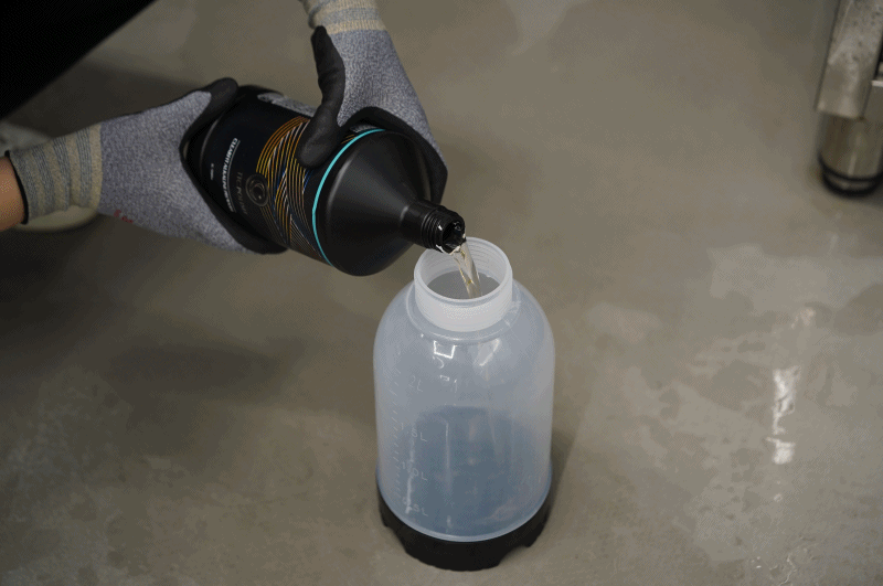 ② 클리어핏 프리워시와 물을 희석 비율에 맞춰서 희석해 줍니다.