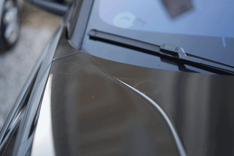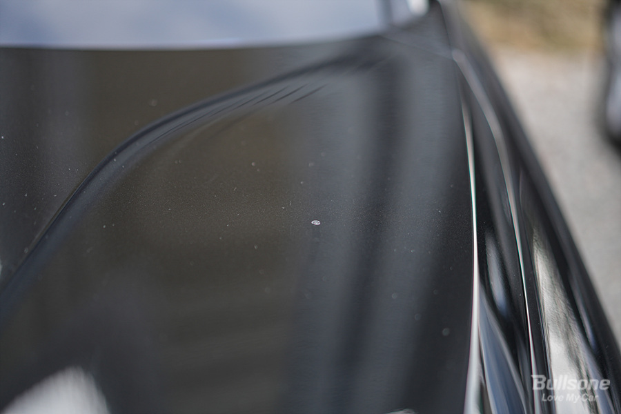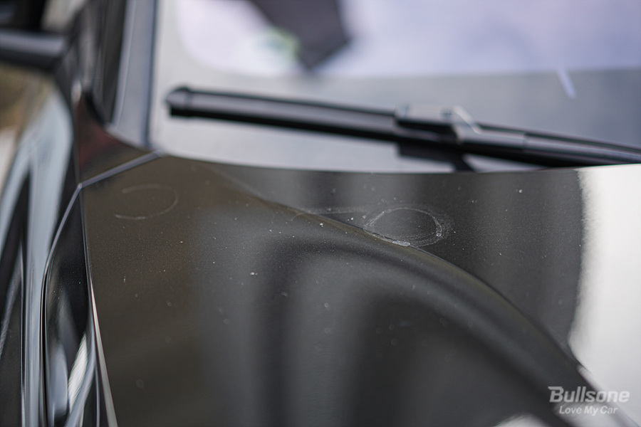 앞 차량에서 뭐가 튀었는지 보닛에 뭐가 많이 묻어있더라고요. 왼쪽에는 누군가가 무언가 올려놓은 자국까지 그대로 남아있었습니다.