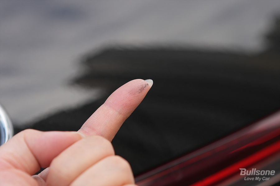 이렇게 손만 스쳐도 바로 자국들이 남기 때문에, 주차장에서 차 사이를 지나가거나 차에 잠깐 기대기만 해도, 옷이 더러워지는 것은 물론 차도 먼지 자국들이 남아 굉장히 지저분해집니다.