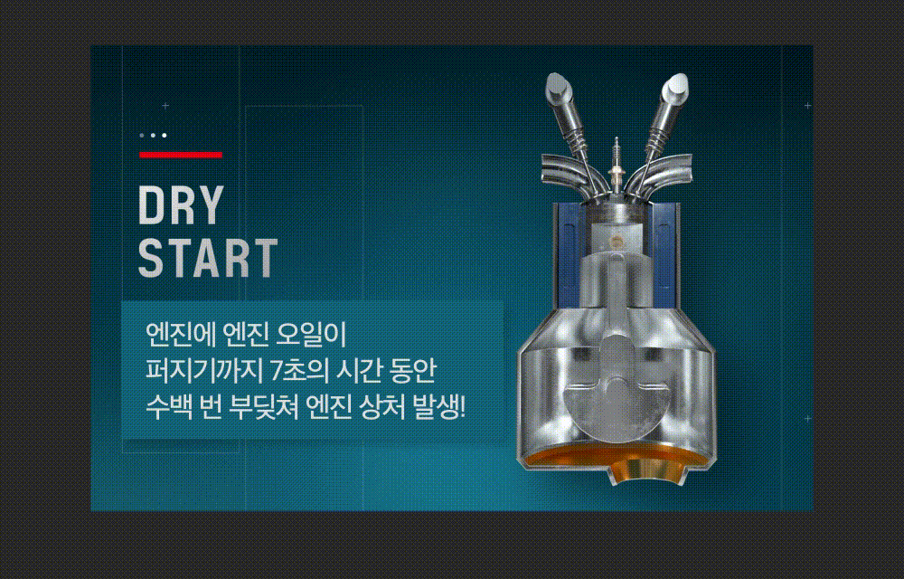 특히 겨울에는 전체적으로 부조현상이 다른 계절보다 더 크게 발생합니다. 위에서 설명한 이유와 더불어 엔진 내 오일이 더 빨리 가라앉는 '드라이 스타트' 현상 때문이기도 한데요. 시동을 걸면, 큰 진동과 함께 엔진 떨림이 차량 내부까지 전해지는 게 느껴지실 겁니다. 드라이 스타트 현상은 엔진코팅제인 불스파워로 엔진을 관리하면서 해결까지 할 수 있습니다.